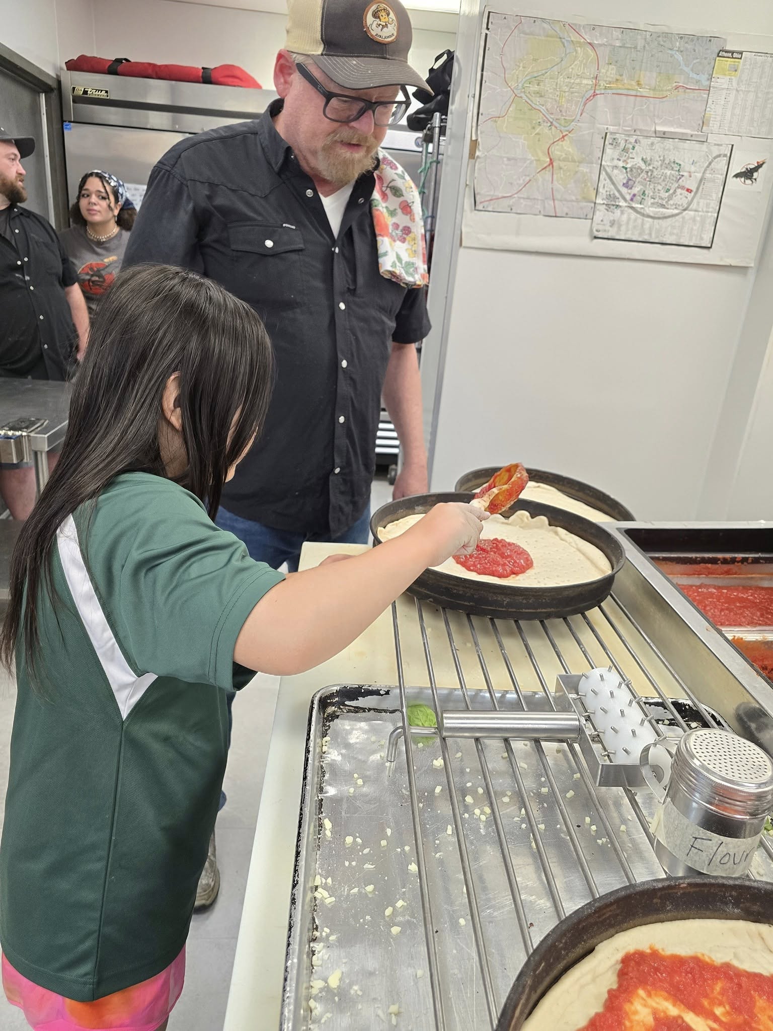 Their child picked her favorite toppings: pepperoni, meatball, and potatoes. But the real surprise? She made the pizza herself—with owner, John! Such a fun and memorable experience.